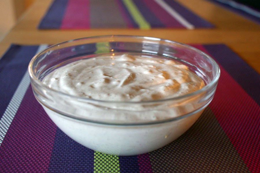 Śmietanę przelewamy do miseczki (czasem mieszam śmietanę z jogurtem naturalnym w stosunku 2:1).Czosnek obieram i przeciskam przez praskę. Dodaje do śmietany. Dodaję szczyptę cukru oraz sól i pieprz do smaku. Mieszam.