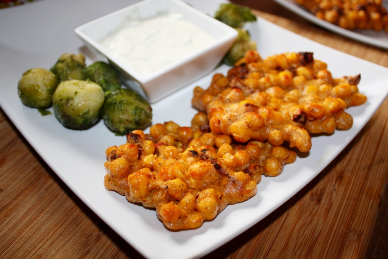 Fajna lekka przystawka lub samodzielne danie , doskonała zamiast ziemniaków do obiadu . Fajne nawet do chrupania zamiast chipsów do piwa . Placki to prosta rzecz i każdy szybko je zrobi . Ciecierzyca po usmażeniu zyskuje pysznego orzechowego aromatu , a kukurydza nadaje lekkiej słodyczy