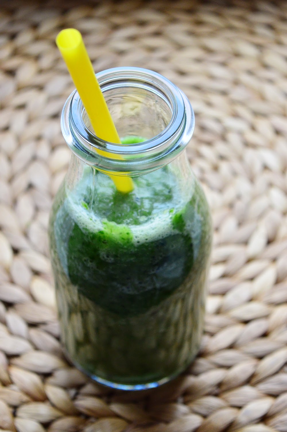 smoothie: szpinak, banan, jabłko, woda kokosowa, spirulina