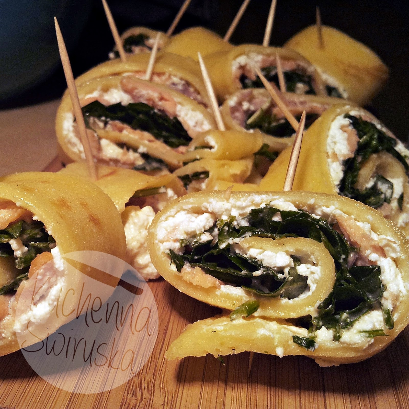 Przekąski imprezowe – naleśnikowa rolada z łososiem i rukolą