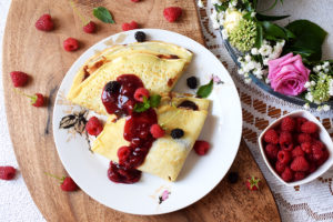 Budyniowe naleśniki z konfiturą wiśniową