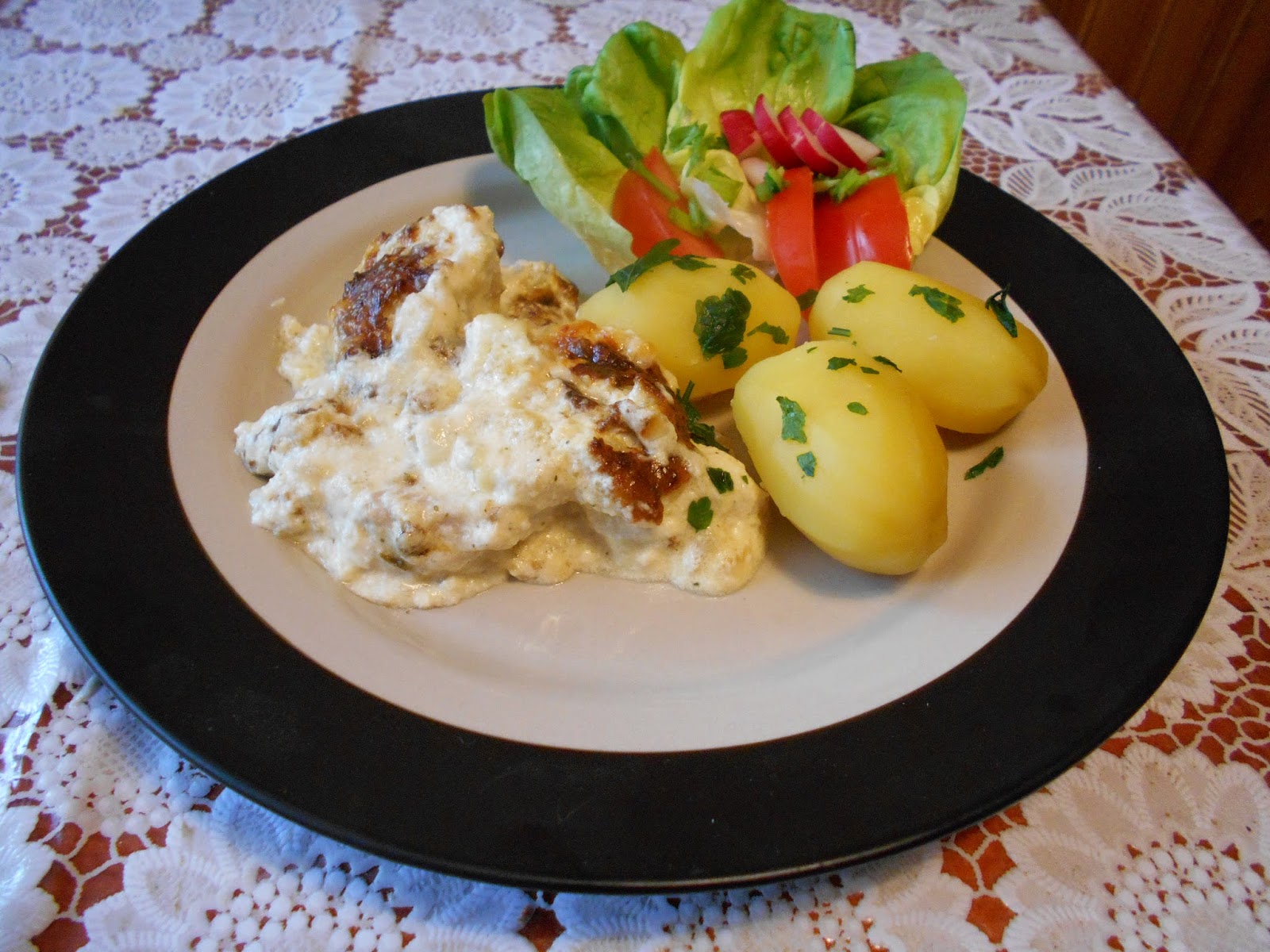 Są to zapiekane piersi z kurczaka w śmietanie.