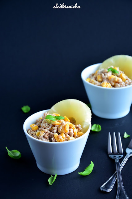 Sałatka z kaszą orkiszową, tuńczykiem, kukurydzą i ananasem