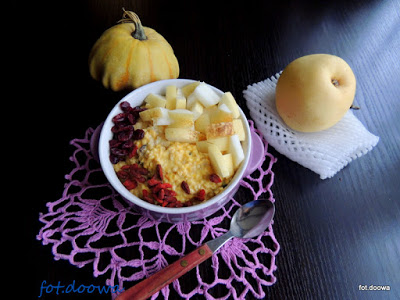 Dziś na śniadanie proponuje pyszny pudding ryżowy z cynamonem i pyszną gruszką…