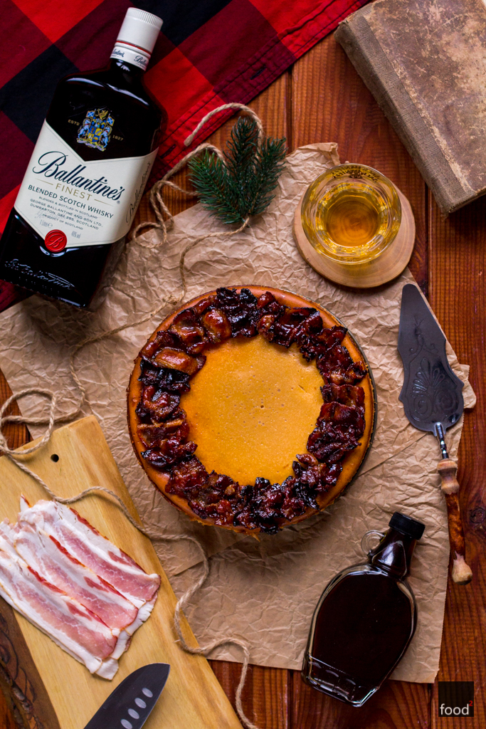 Sernik z ricotty z bekonem karmelizowanym w whisky i syropie klonowym