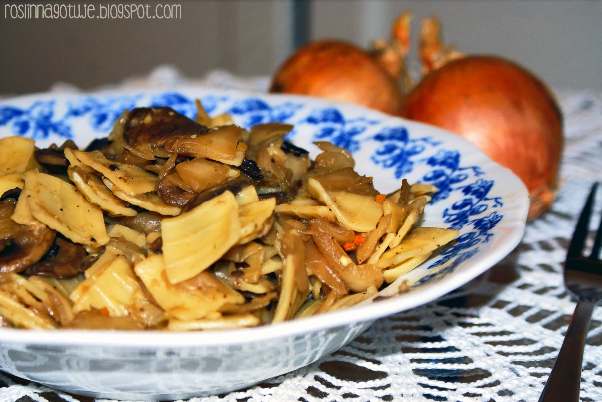 Kiedy tak je wspominam, na myśl przychodzą mi łazanki, urzekające swą prostotą. Jako weganka mam ułatwione zadanie, ponieważ z zasady łazanki to kombinacja