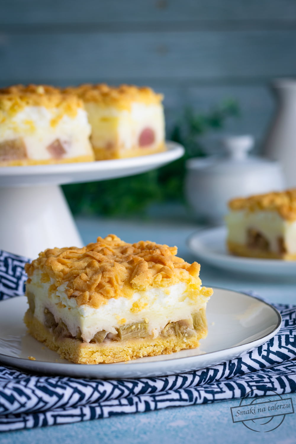 Kruche ciasto z rabarbarem, budyniem i kisielową pianką. Nie za słodkie. Bardzo…