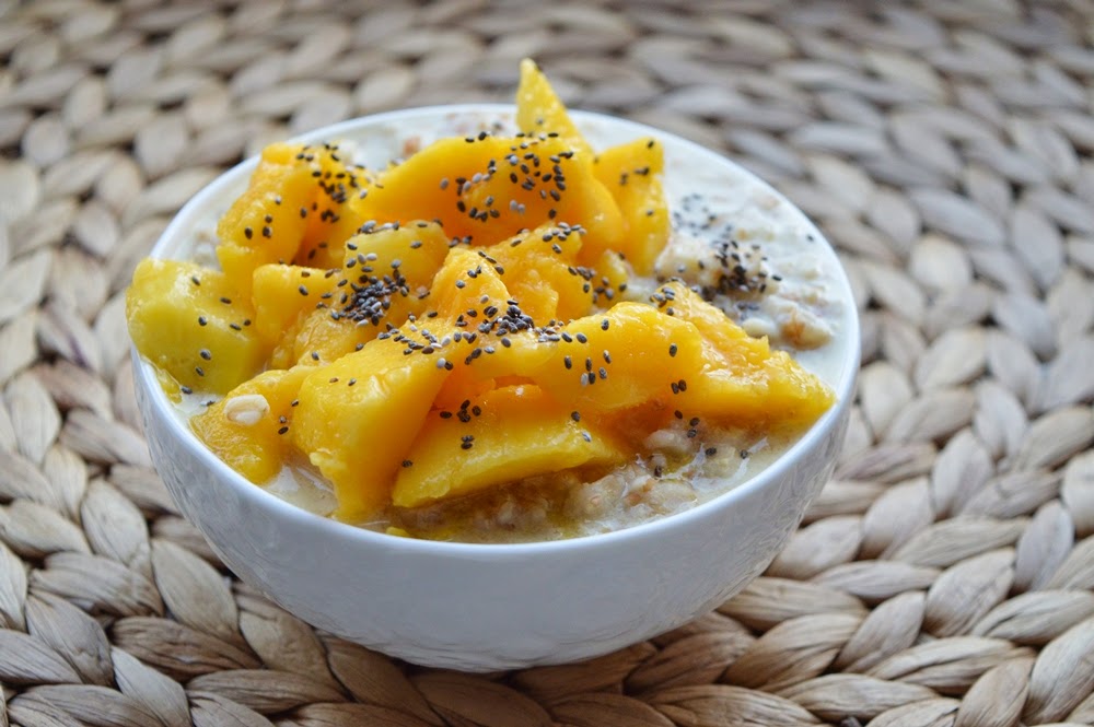 waniliowa owsianka jogurtowa z mango i chia