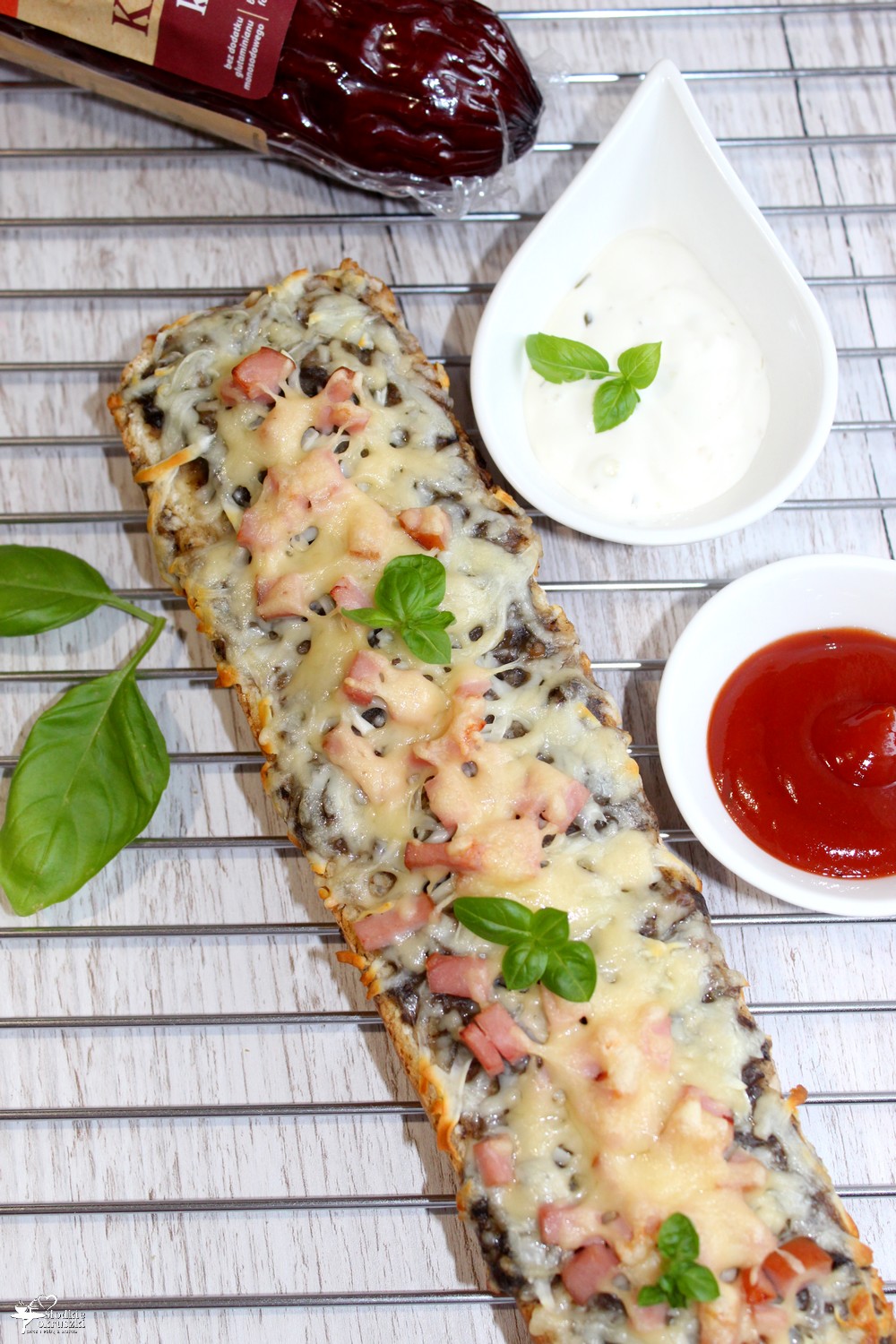 Zapiekanka z pieczarkami i kiełbasą krakowską. Lubicie klasyczne zapiekanki na bagietkach? Ja…