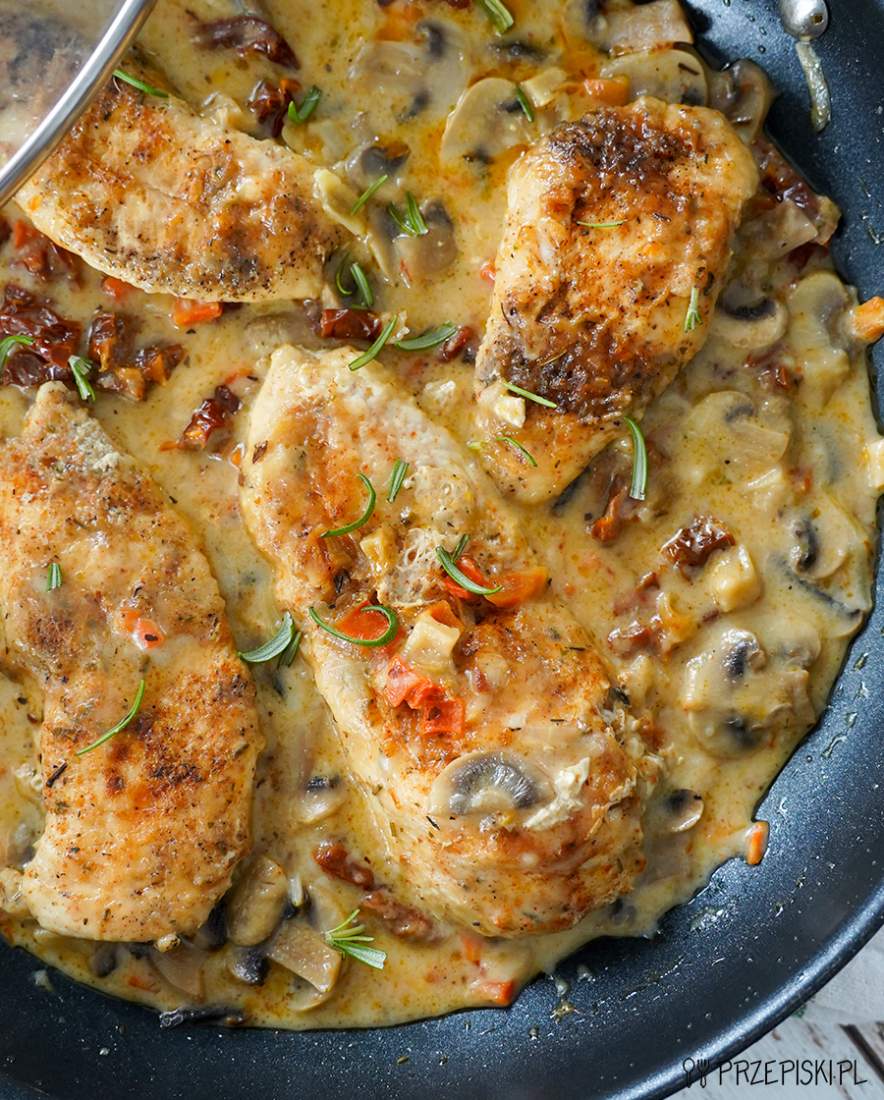 Kurczak w sosie z pieczarkami i suszonymi pomidorami