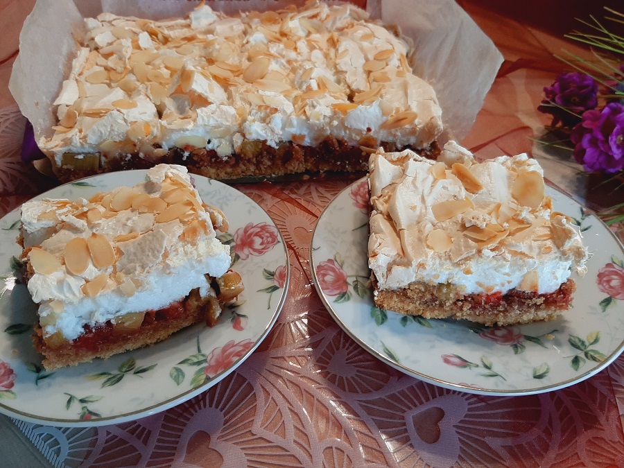 Mega pyszne ciasto z rabarbarem i bardzo delikatną pianką bezową na kruchym…