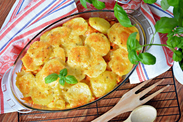 Pyszne danie prosto z piekarnika. Mięso i warzywa otulone delikatną sojową pierzynką doskonale…
