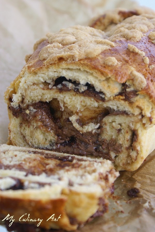 Ta babka to chyba najsmaczniejszy deser jaki mi przyszło ostatnio jeść! Pyszne, nie za bardzo słodkie, mięciutkie w środku i chrupiące z zewnątrz. Całość w smaku przypomina trochę Cinnabons z dodatkiem czekolady 🙂 Przepis znalazłam na stronie ‚