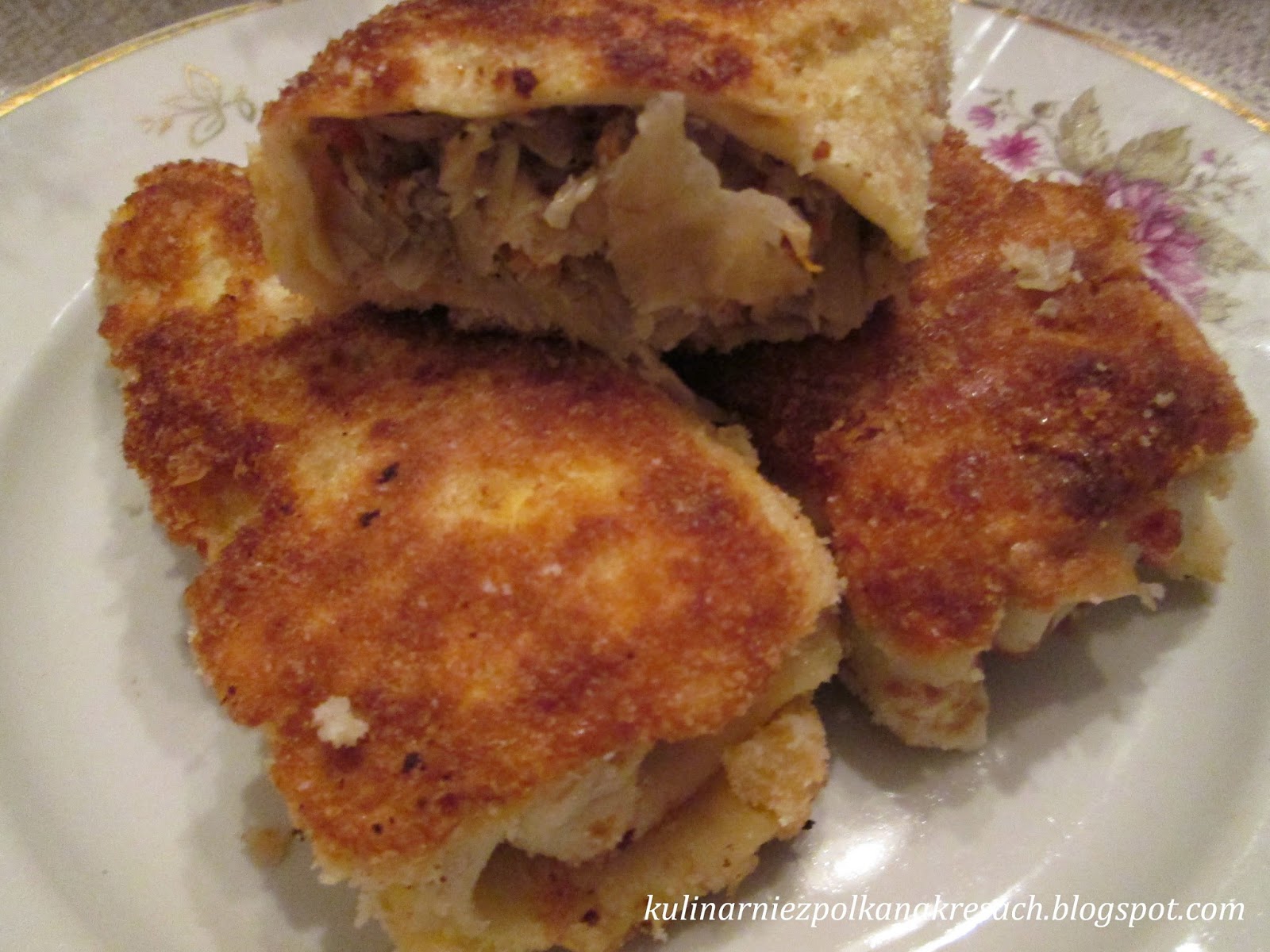 krokiety z kapustą kiszoną i pieczarkami