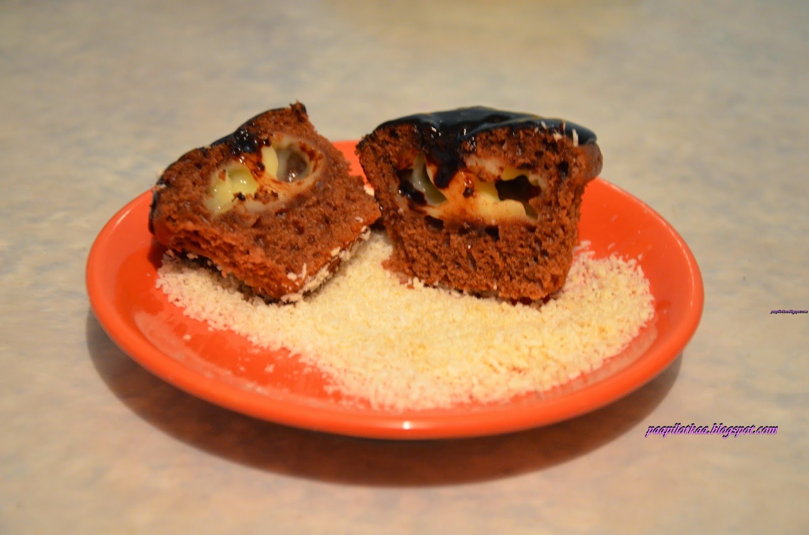 Muffinki czekoladowe z budyniem i polewą czekoladową
