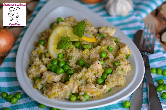 Zdrowa kasza, delikatny kurczak, lekko ostry por i łagodny zielony groszek to…