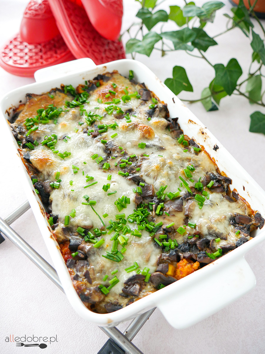 Zapiekanka makaronowa z pieczarkami i serem mozzarella