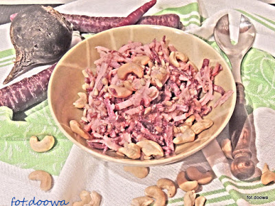 Surówka z czarnej rzepy i fioletowej marchwi