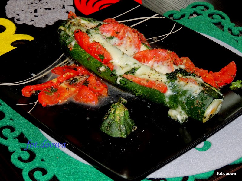 Cukinie zapiekane z pomidorami i mozzarellą.
