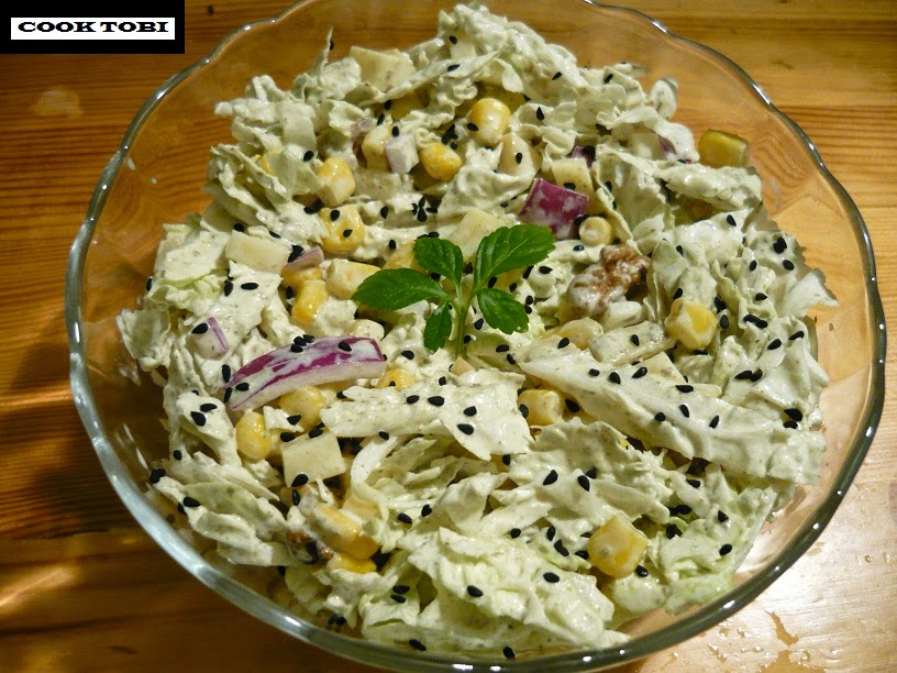 Uzupełniam księgę karnawałowych sałatek i oto apetyczna moja propozycja. Zmielone pestki dyni…