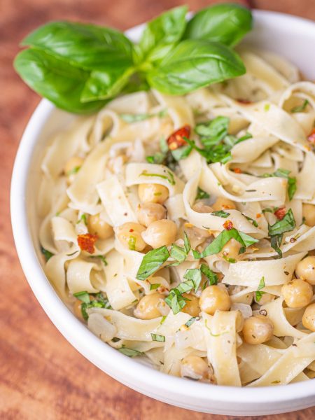 Makaron z ziołami, czosnkiem i ciecierzycą