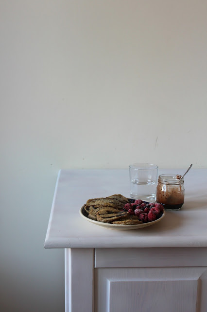 Placki z mąki pełnoziarnistej z chia, polane sosem czekoladowo-malinowym i mrożone jagody…