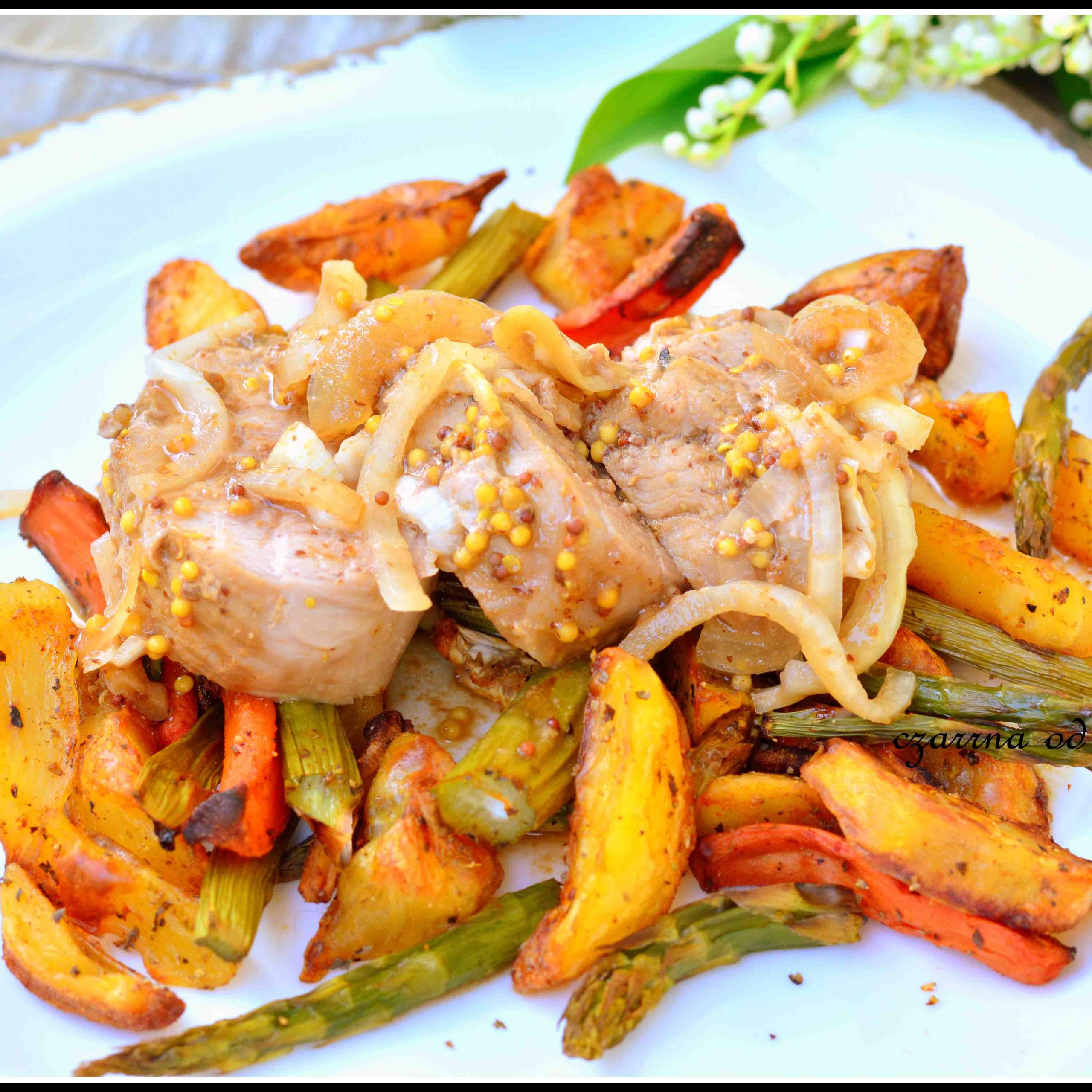 Składniki: 1 polędwiczka wieprzowa marynata: 1 łyżka musztardy francuskiej 1 łyżka musztardy…