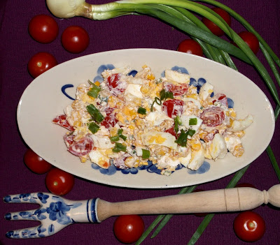 Sałatka grecka z fetą, oliwą, pomidorkami, jajkiem i szczypiorkiem