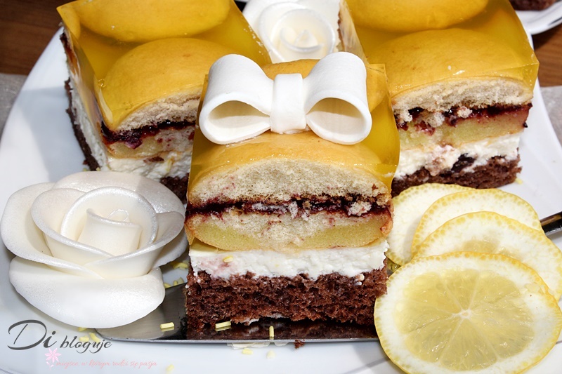 Cytrynowy całusek, czyli kakaowy biszkopt z kremem mascarpone, całuśnymi biszkopcikmi i galaretką