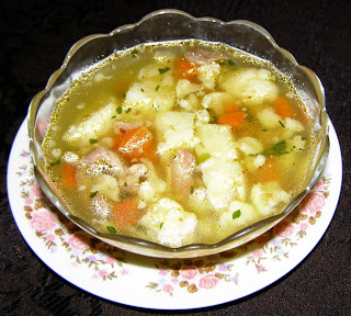 mięso gulaszowe z indyka 1/2 kg, oliwa 1/4 szklanki, woda 3 litry, kalafior 1 średni, warzywa mrożone 50
