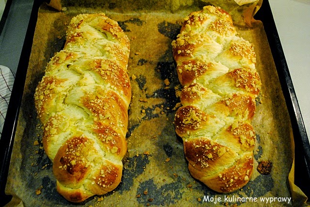 Drożdżowe pszenne pieczywo w postaci zaplecionego warkocza.