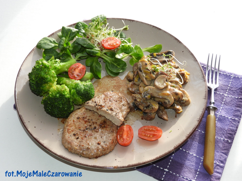 Sznycle z udźca cielęcego z sosem pieczarkowym