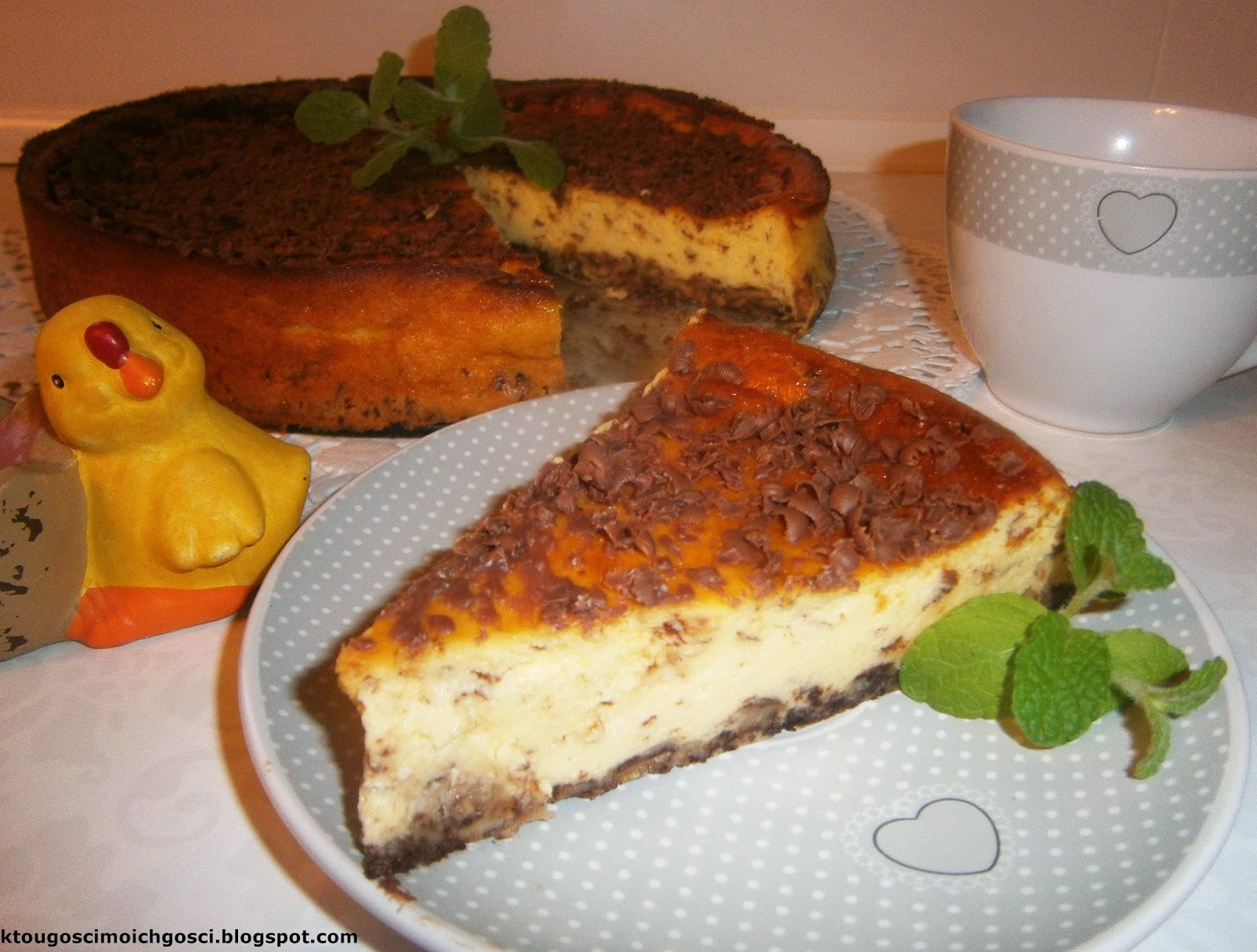Sernik adwokatowy z czekoladą na spodzie z czekoladowych ciasteczek. Wspaniały! O idealnej konsystencji – zbity, ale nie za twardy, kremowy i mokry ale nie rozwalający się. Lekko alkoholowy, w sam raz słodki – w smaku nie podobny do żadnego sernika, jaki do tej pory jadłam. Na prawdę ciężko poprzestać na