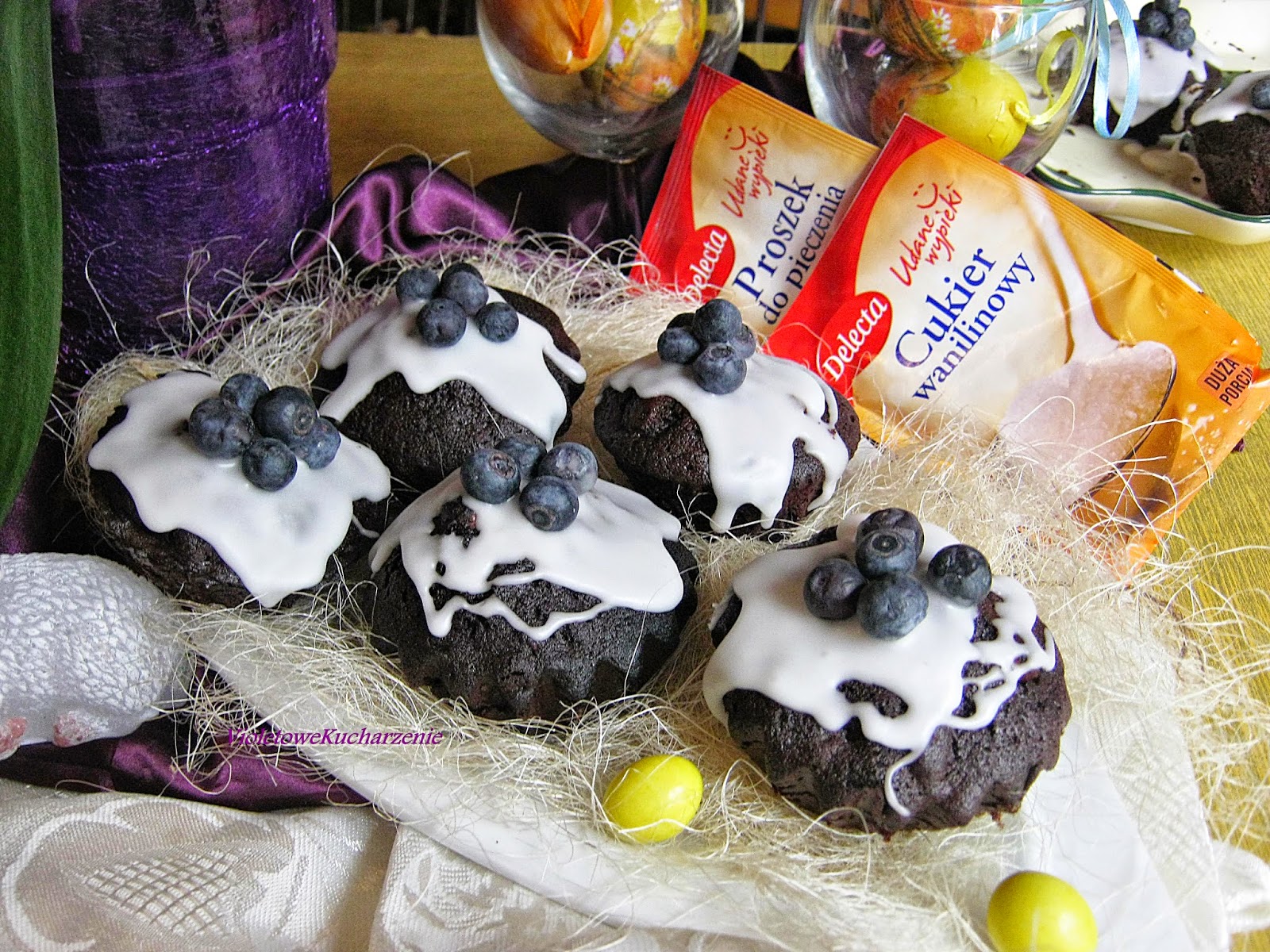 Murzynka pamiętam od dziecka, zawsze zajadaliśmy się nim z masełkiem… Mój troszkę w nowszej wersji- jako babeczki – z bakaliami i borówkami amerykańskimi… Babeczki idealne do wielkanocnego koszyczka.