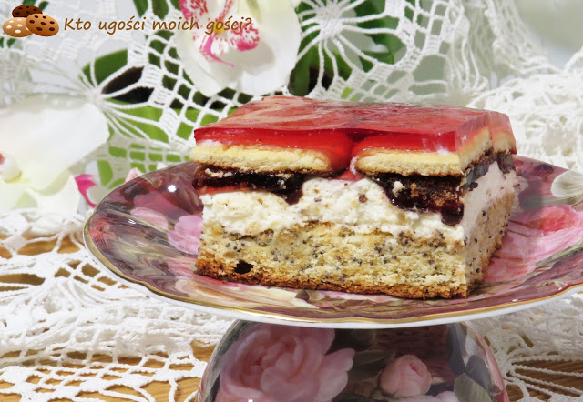 Biszkopt z makiem, krem z mascarpone i likierem śmietankowym, do tego nasączone…