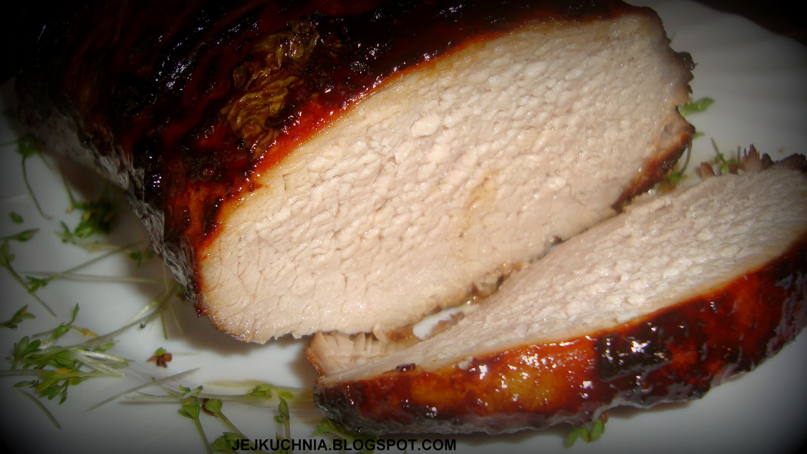 Składniki:1-1,2 kg schabu,2 łyżki powideł śliwkowych,2 łyżki sosu sojowego,łyżka octu winnego,3 łyżki miodu,2 łyżeczki soli,5 listków
