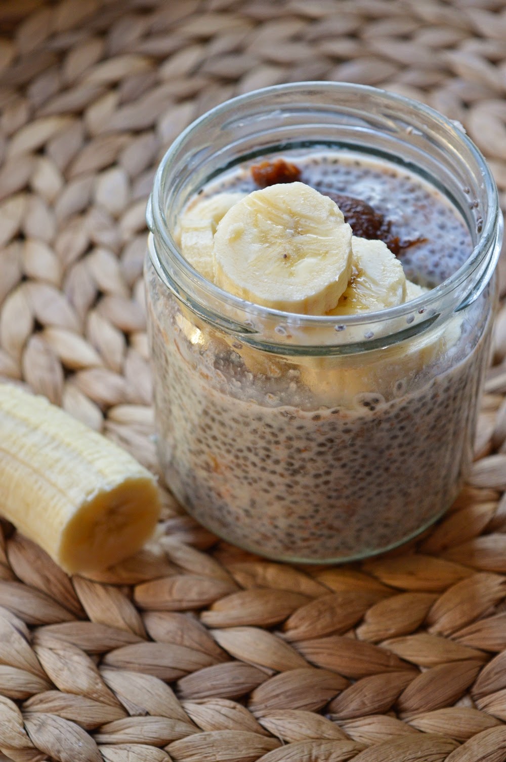 truskawkowy pudding chia z figami, bananem i domowym dżemem truskawkowym
