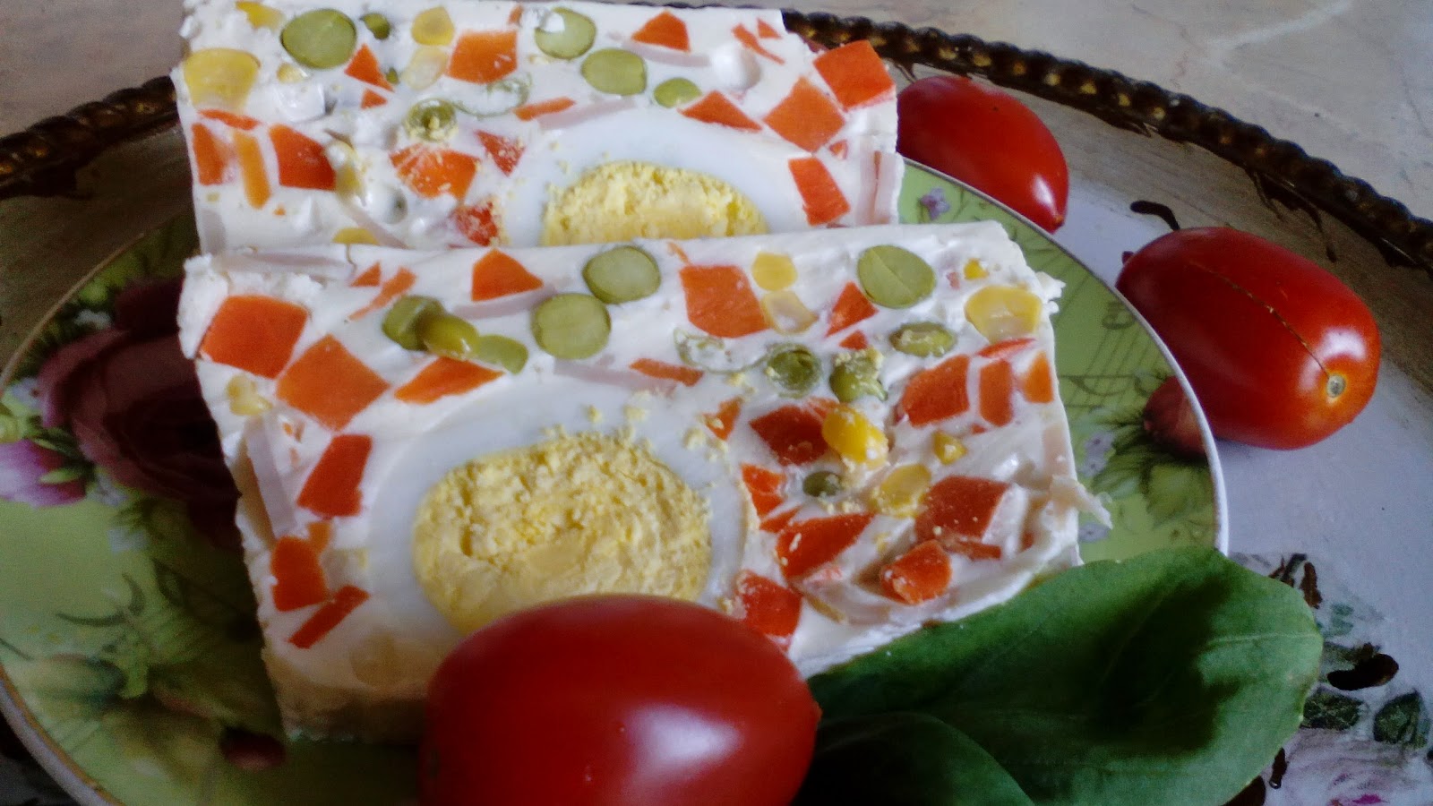 Bardzo ładnie wyglądająca przekąska. Smak również będzie odpowiadał wielu osobom.Taka galareta z jajkiem, szynką i warzywami jest na pewno ozdobą każdego stołu. Nazywana również Terriną wielkanocną. Oczywiście nie jest to słodki śmietanowiec, chociaż wyglądem trochę go przypomina Zapraszam do obejrzenia zdjęć i przepisu.