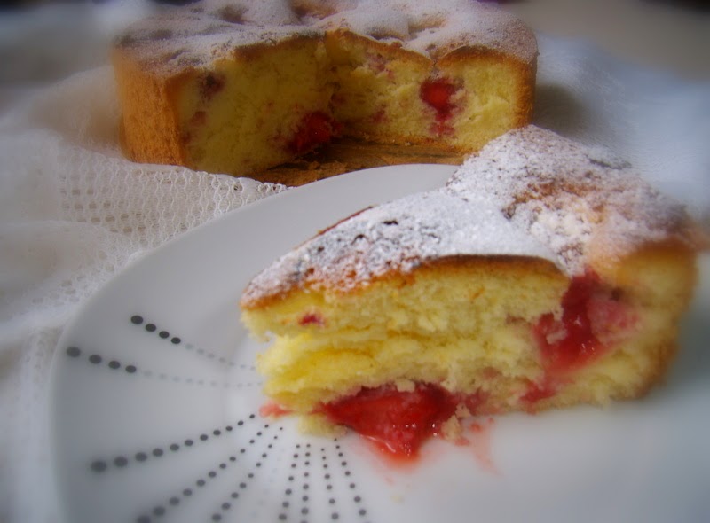 4 jajka (duże L)1/2 szkl. cukru1/2 szkl. oleju (u mnie rzepakowy)200 g mąki pszennej typ 450 (1,5 szkl.)1,5 łyżeczki proszku do pieczenia5 kropel aromatu (dałam cytrynowy)szczypta soli500 g owoców (wykorzystałam mrożone truskawki)cukier puder do posypaniaSkładniki wyciągnąć wcześniej by uzyskały temperaturę pokojową.