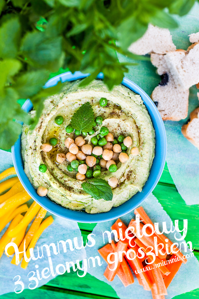 Ulubiony hummus w towarzystwie zielonego groszku i listków świeżej mięty, ideał. Niezwykle orzeźwiający, wspaniale sprawdza się jako przekąską w ciepłe wiosenne i letnie dni! Zapraszam również po inne przepisy na hummus:SKŁADNIKI: