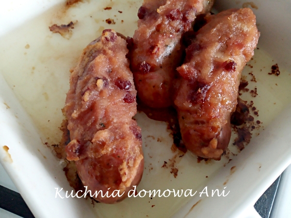 Biała kiełbasa pieczona z żurawiną i chrzanem