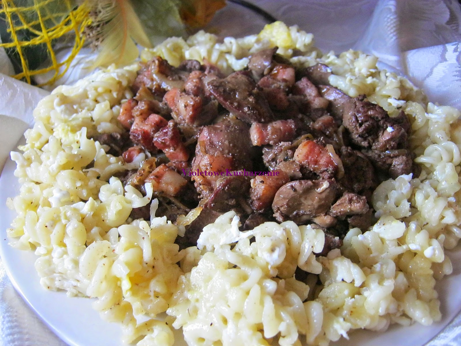 Bardzo prosty i szybki pomysł na obiad. Uwielbiam wątróbkę i staram się ja przygotowywać na wiele sposobów. Do tego mój ulubiony makaron z jajkiem.