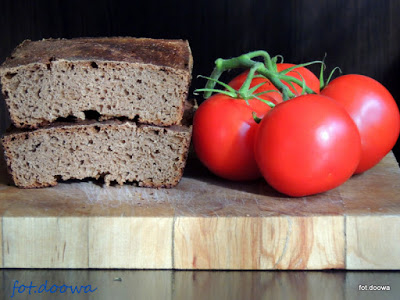 Przepis na ten cudowny chleb znalazłam u Angie. I muszę przyznać, że Angie piecze wspaniałe chlebki. Przepis nieco zmodyfikowałam, a efekt już sami widzicie, wart jest czekaniaNajlepiej smakował nam z wędliną.