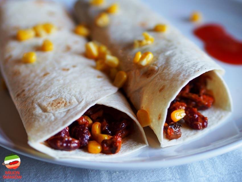 Tortille z nadzieniem meksykańskim z tajskim sosem, czyli połączenie kultur z dwóch różnych stron świata. W zasadzie jeśli nie lubicie ostrych potraw, to sos można pominąć i danie będzie pasowało do kuchni meksykańskiej jak znalazł. Smak bez ostrej nuty sosu jest lekko słodki i też bardzo smaczny.
