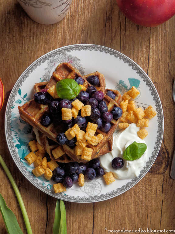 Tosty francuskie z gofrownicy – chyba nie ma na świecie lepszych! Są lepiej upieczone w środku, a na zewnątrz bardziej chrupiące.W dodatku do masy jajecznej dodałam bananowe puree, które nadało pięknego aromatu.Te z patelni po prostu nie mogą się z nimi równać!Podałam je z bardzo popularnymi w USA