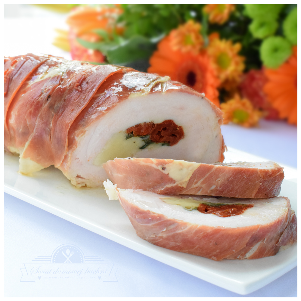 1 duży filet z indyka (1,3 kg),1 słoiczek suszonych pomidorów w oleju,garść…