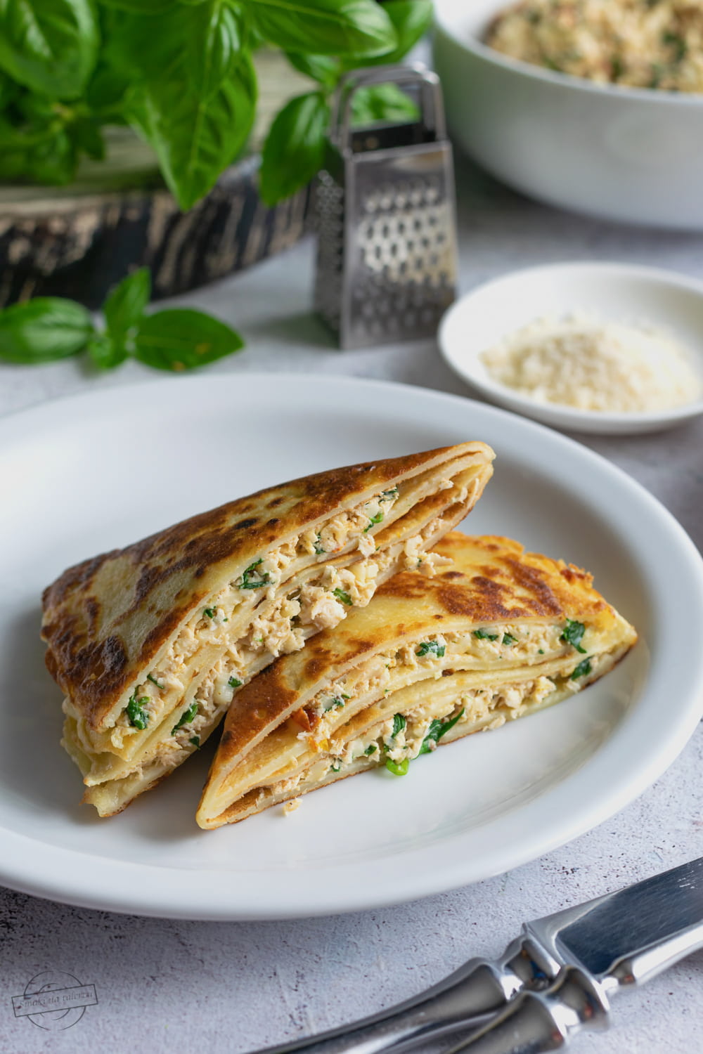 Naleśniki z kurczakiem, szpinakiem oraz serem