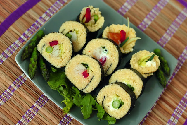 Lubicie eksperymentować w kuchni? Ja bardzo 🙂 Czesto szukam nowych, nieznanych mi jeszcze produktów, łączę różne smaki i konsystencje. Raz wychodzi lepiej, raz gorzej. Czasem dokonuję wielkich odkryć i nowe połączenia na stałe wchodzą do mojego menu. Tak właśnie było z moim ostatnim eksperymentem. Postanowiłam zrobić uwielbiane przeze mnie sushi,