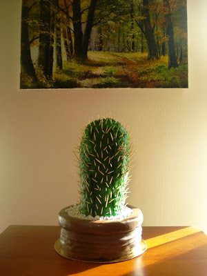 Wczoraj były urodziny mojego Ojca, a że jest On miłośnikiem i kolekcjonerem kaktusów zrodził się pomysł, aby w formie prezentu przygotować dla Niego tort właśnie w tym kształcie.