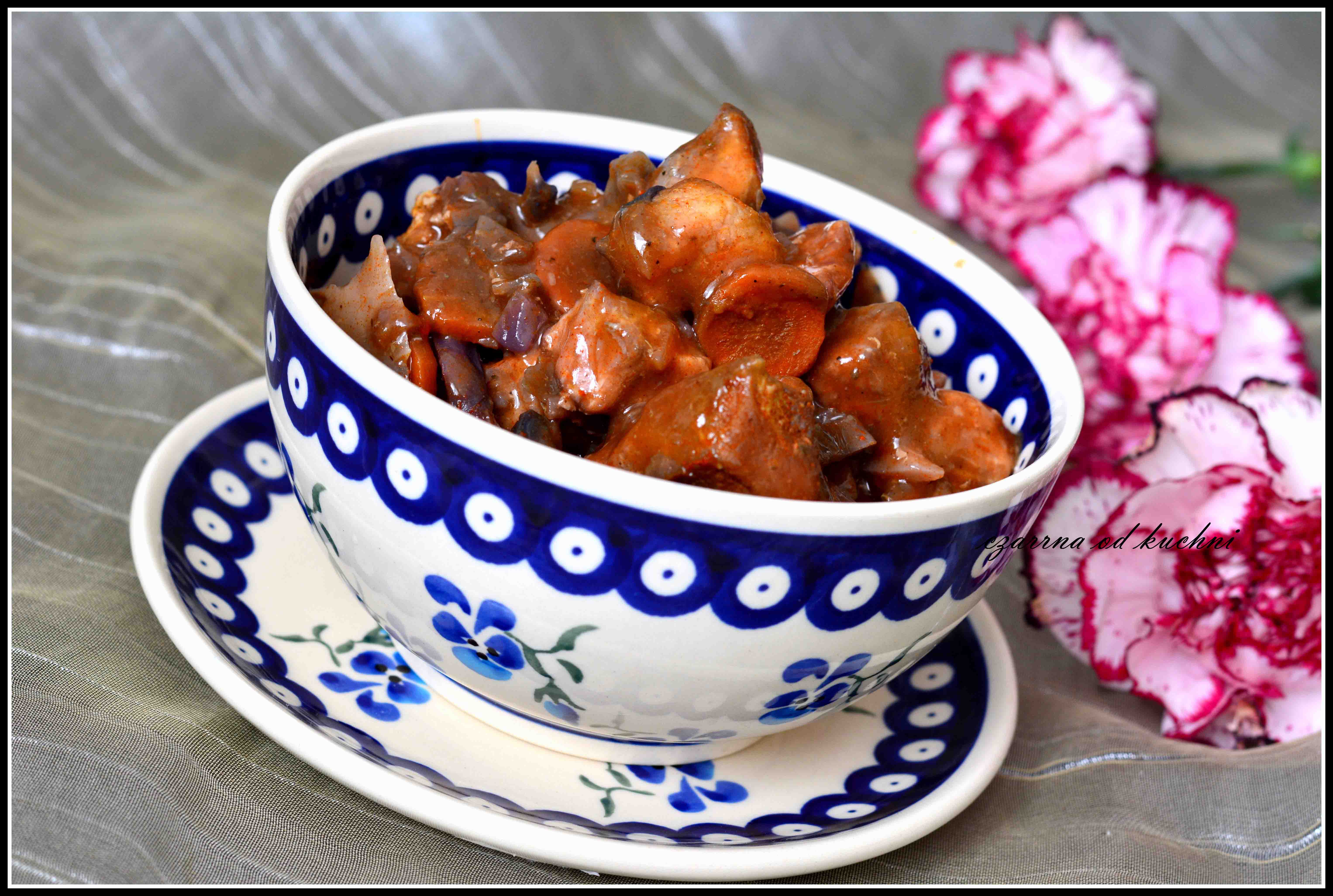 Gulasz z szynki wieprzowej z czerwoną kapustą